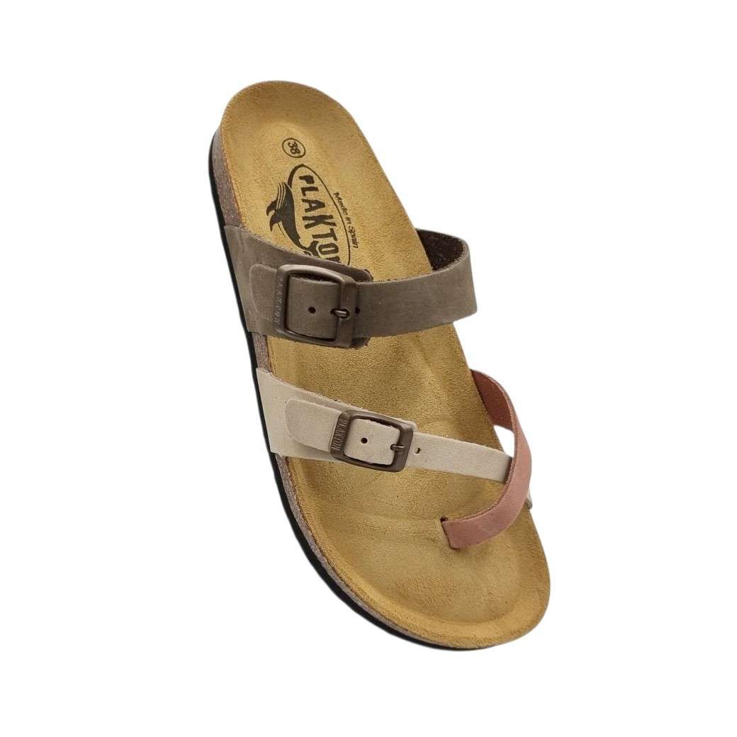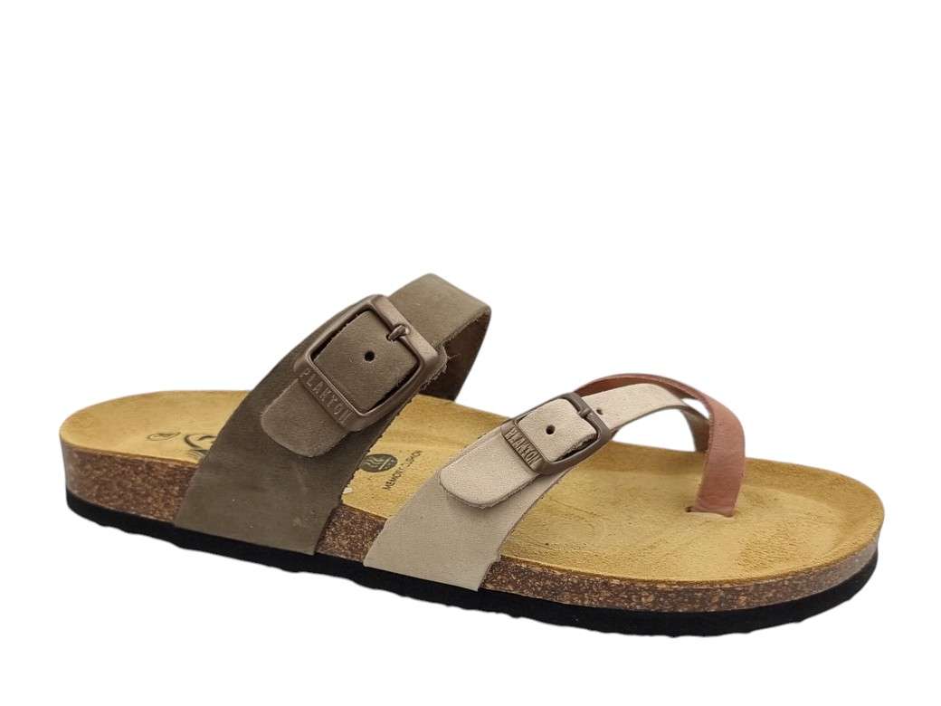 Plakton. Γυναικεία δερμάτινα σανδάλια – παντόφλες. Κυκλοφορούν σε όμορφα χρώματα και σχέδια για τις καλοκαιρινές σας εμφανίσεις. Έχουν πολύ καλή εφαρμογή, ενώ το δερμάτινο διαμορφωμένο ανατομικό τους πέλμα από φελλό και καουτσούκ με τεχνολογία memory cushion θα σας καταπλήξει με την άνεση και την σταθερότητά του. Συνδυάζουν την καλοκαιρινή μας διάθεση με στυλ, στην πόλη την παραλία ή το κάμπινγκ. mod 181032